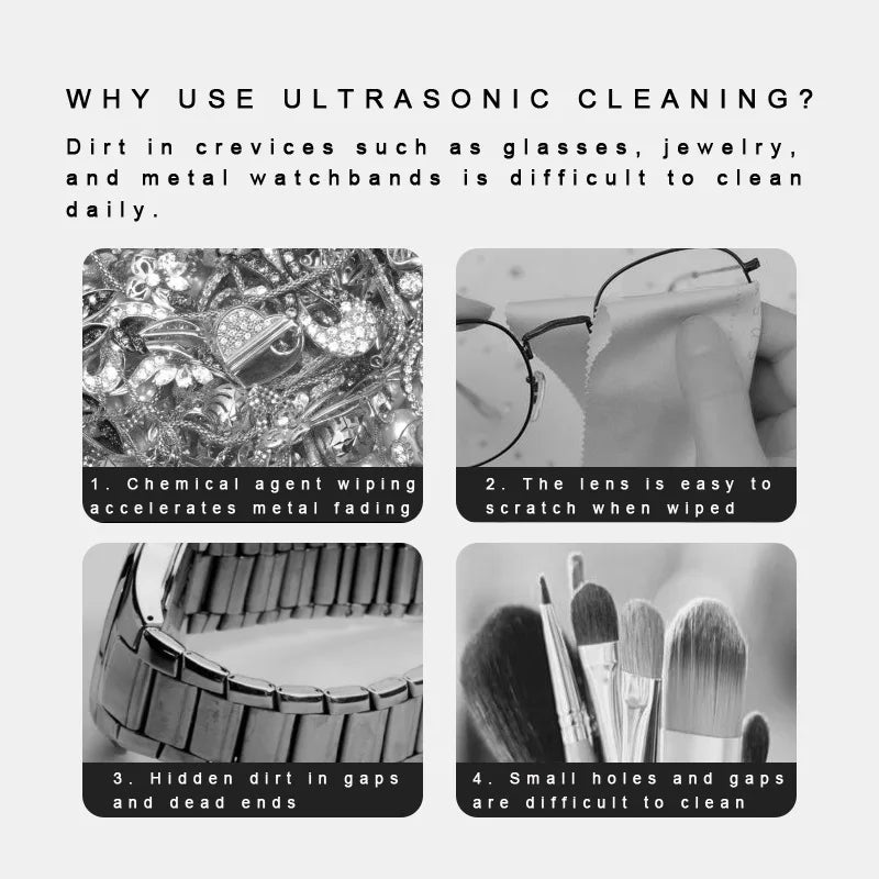 Mini Jewelry Cleaner Portable Glasses Braces Cleaning Machine Multifunctional Bath Vibration Cleaner Home Cleaning Products