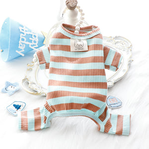 Dog Clothes Spring and Summer Thin Wide Striped Four-legged Home Clothes Bottoming Shirt Small Dog Teddy Pet
