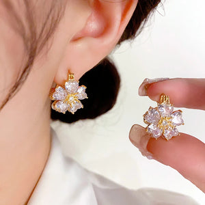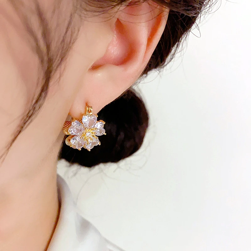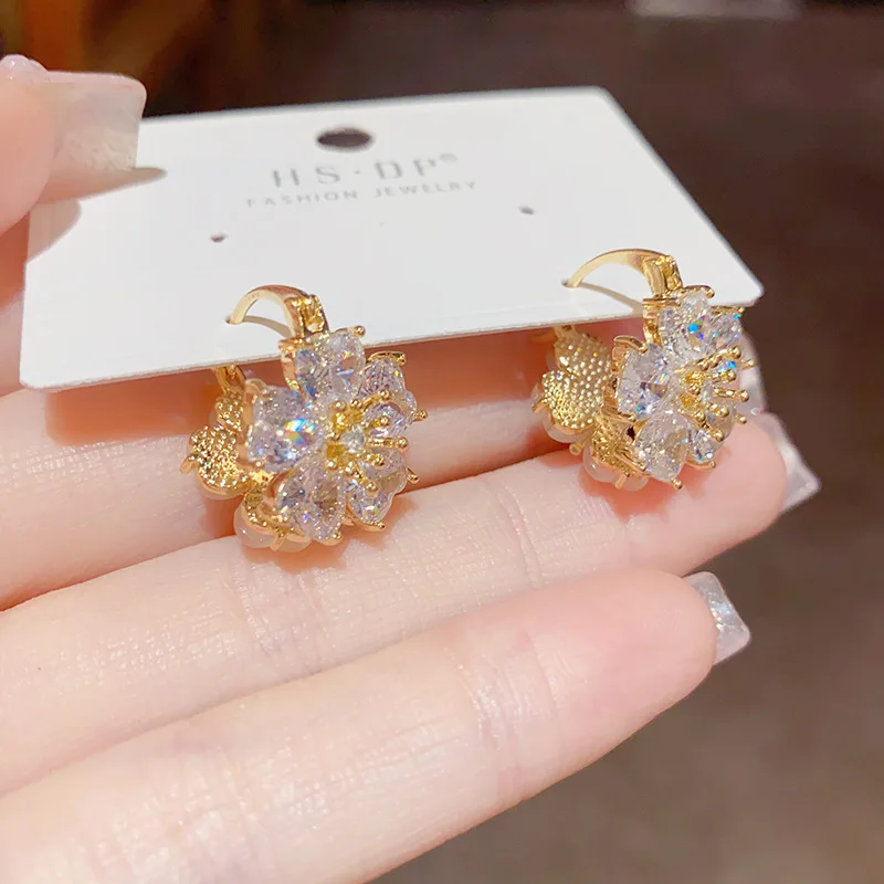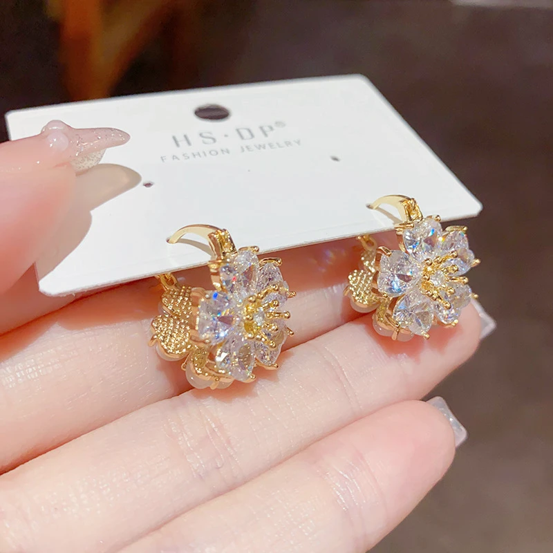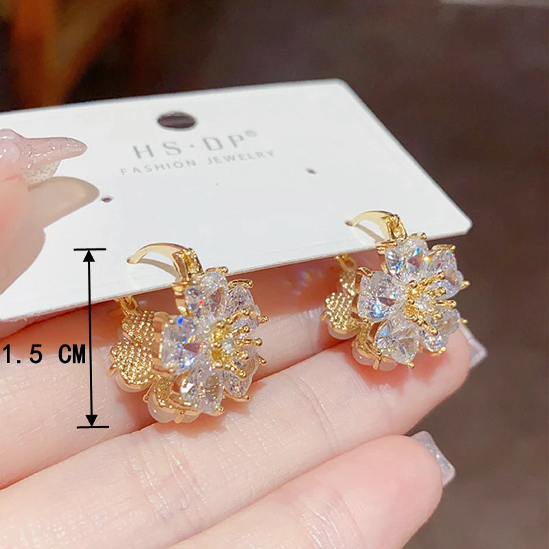 New Luxury Zirconia Crystal Flower Stud Earrings for Women 2024 Korean Fashion Hoop Earrings Jewelry Party Exquisite Accessories