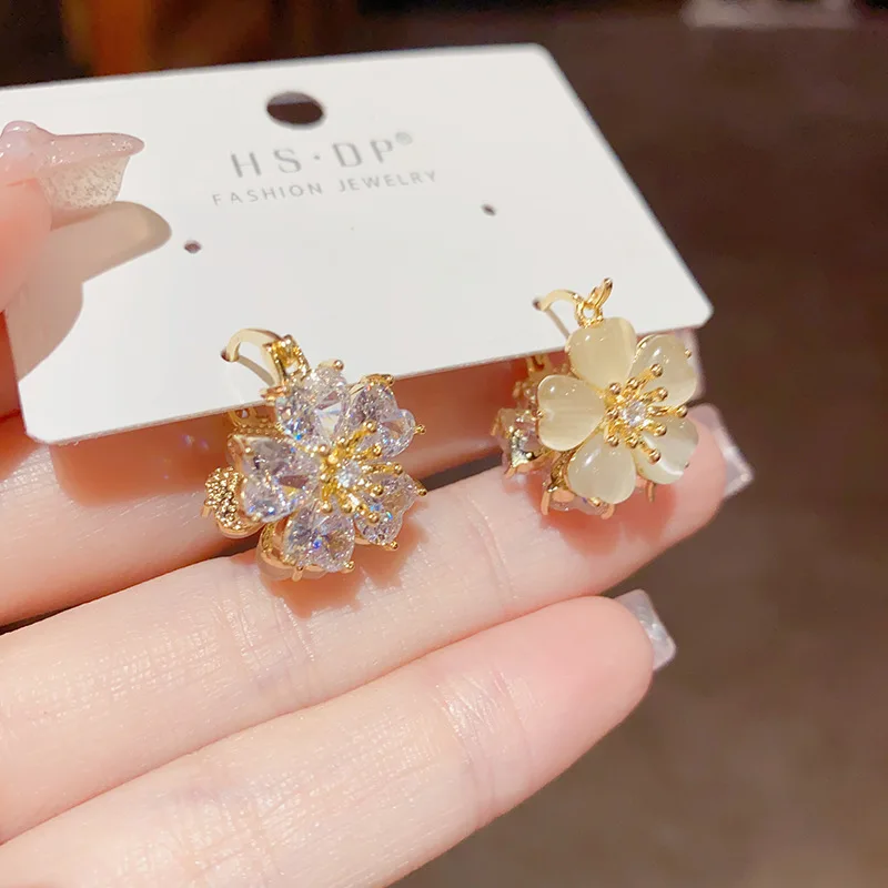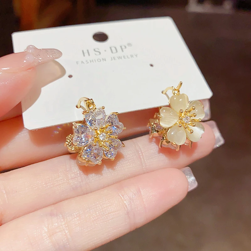 Home Clothing, Shoes & Jewelry New Luxury Zirconia Crystal Flower Stud Earrings for Women 2024 Korean Fashion Hoop Earrings Jewelry Party Exquisite Accessories
