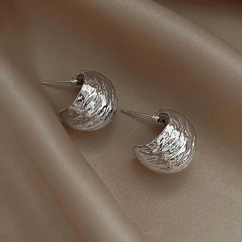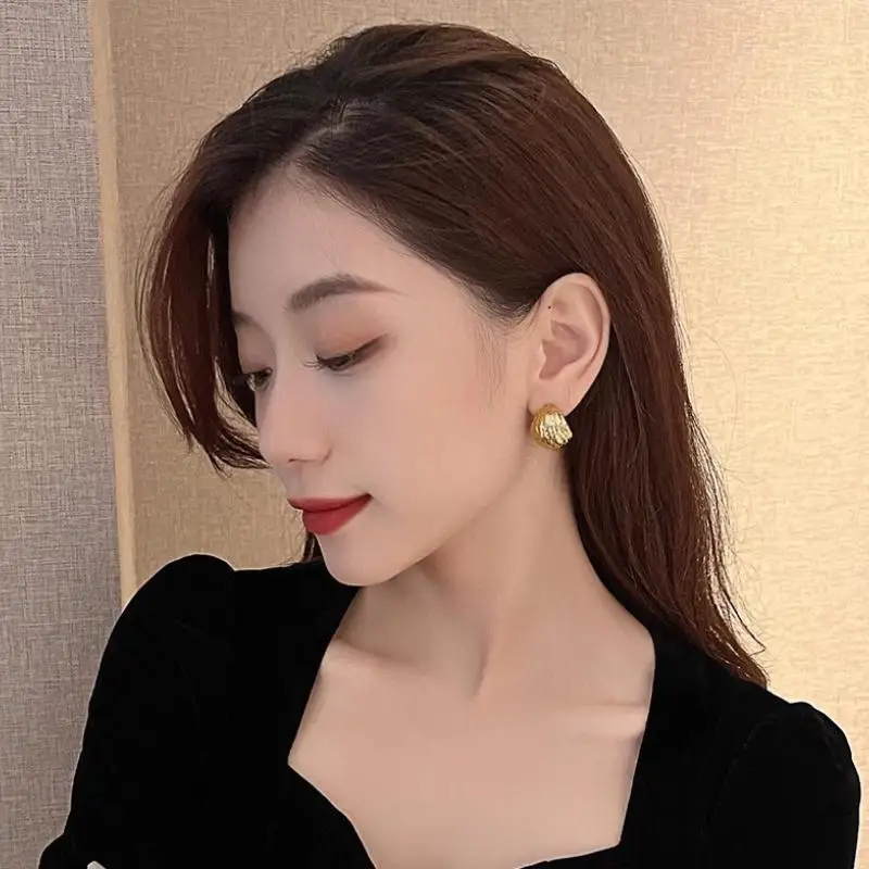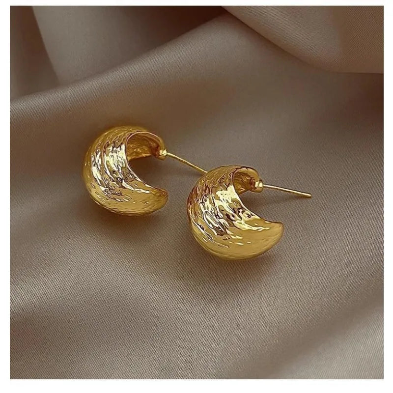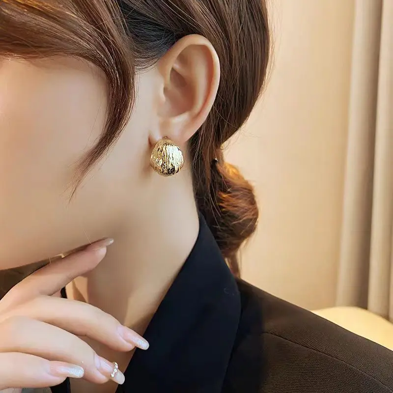 Wrinkled Surface Gold Light Luxury Earrings Women's Early Spring Niche Design Sense 2025 New High-end Sense