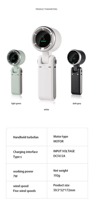 • 【Digital Display - Power Reminder and 5 Gear Wind】The handheld turbo fan features a high-definition digital display that displays gear wind and residual power in real time. When the battery is low, it can remind you to charge the travel fan in time and ensure that you have a portable cooling fan for every trip. We offer 5 wind speed settings that you can adjust to meet your specific cooling needs anytime